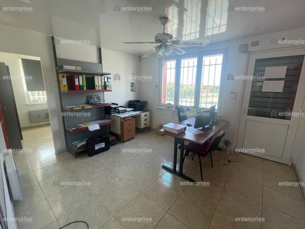 Bureaux : 100 m² comprenant 2 bureaux, une salle de pause et un vestiaire